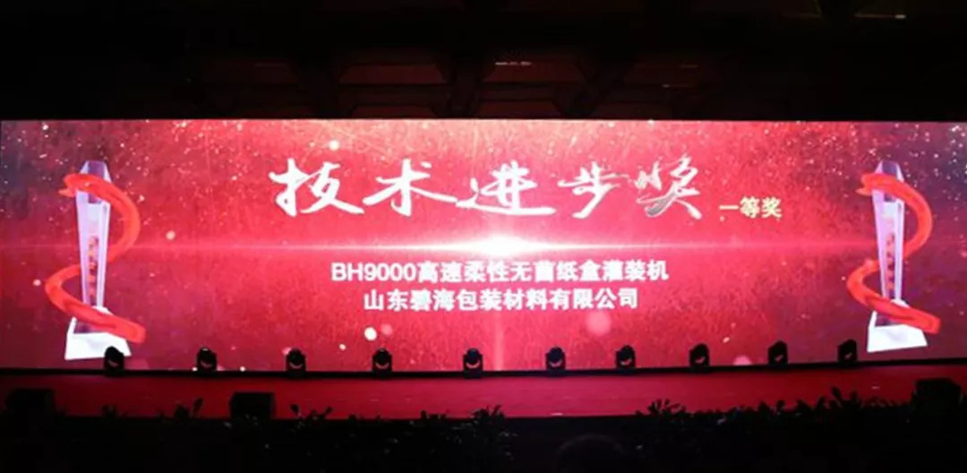 8月25日晚,2018年度中國乳制品工業(yè)協(xié)會系列頒獎(jiǎng)典禮在西安曲江國際會議中心隆重舉行。山東碧海包裝材料有限公司制造的BH9000高速柔性無菌紙盒灌裝機(jī)榮獲技術(shù)進(jìn)步獎(jiǎng)一等獎(jiǎng)!
