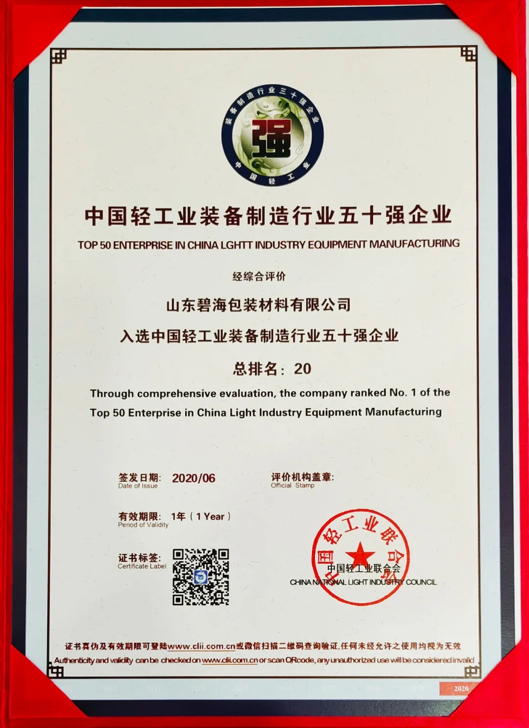 會上宣讀了中國輕工業(yè)裝備制造五十強企業(yè)、中國液態(tài)食品機械行業(yè)十強企業(yè)名單,碧海包裝均位列其中。本次評選是貫徹黨中央國務院關于加強科技創(chuàng)新、培育具有全球競爭力一流企業(yè)、建設制造強國系列戰(zhàn)略部署的具體舉措,是中國輕工業(yè)聯(lián)合會、中國輕工機械協(xié)會以及社會各界對碧海包裝綜合能力和行業(yè)影響力的肯定和認可。